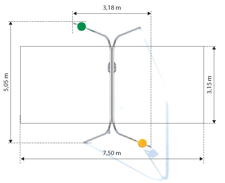 - Sigurnosna površina: 7,50 x 3,15 m