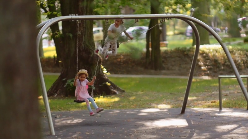 Dvostruka ljuljačka s ravnim sjedalima namijenjena za 2 osobe sa stilistikom koja se odnosi na oblike puža i žive boje. Ljuljačka se sastoji i od dvije klupe za roditelje. Konstrukcija od nehrđajućeg čelika otporna na vremenske uvjete i intenzivnu uporabu. Klupe izrađene od HDPE materijala. Okviri koji završavaju ukrasnom okruglom kuglom koja se oblikuje u puževe.