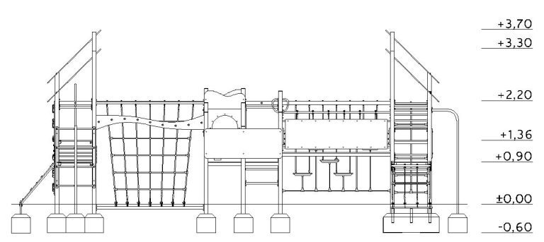 - Platforme: vodootporna šperploča, debljine 15 mm, s tamnosmeđim šesterokutnim protukliznim slojem, postavljena na grede od pocinčanih čeličnih profila 60×40 mm, neobojene